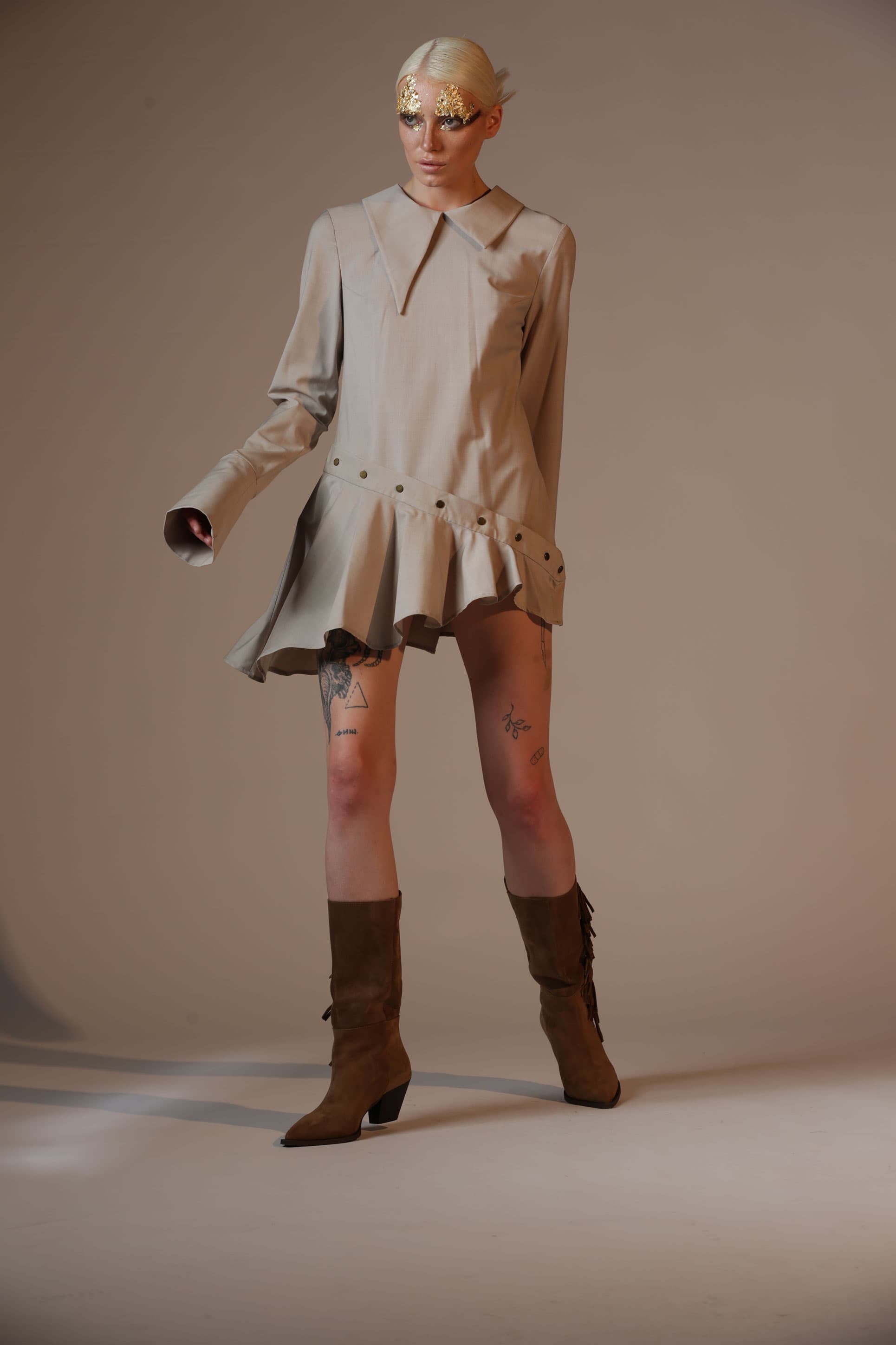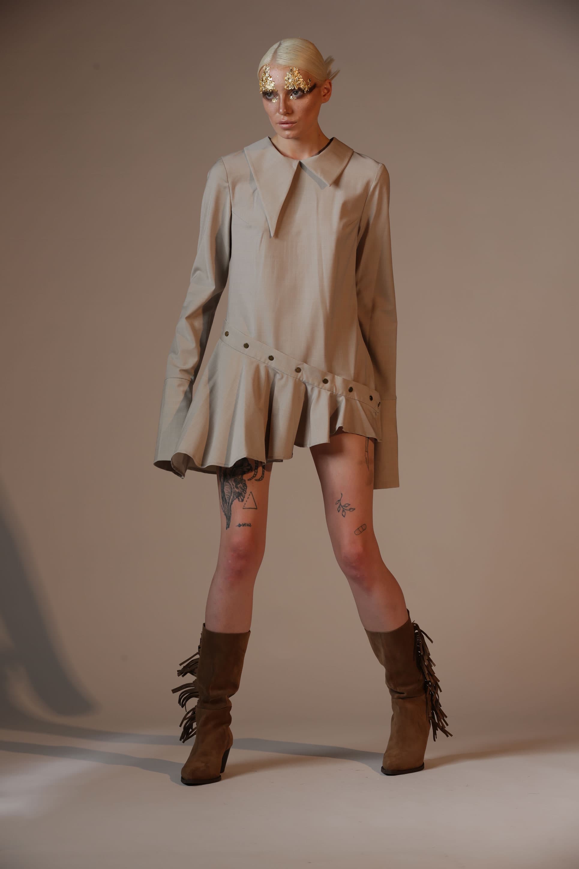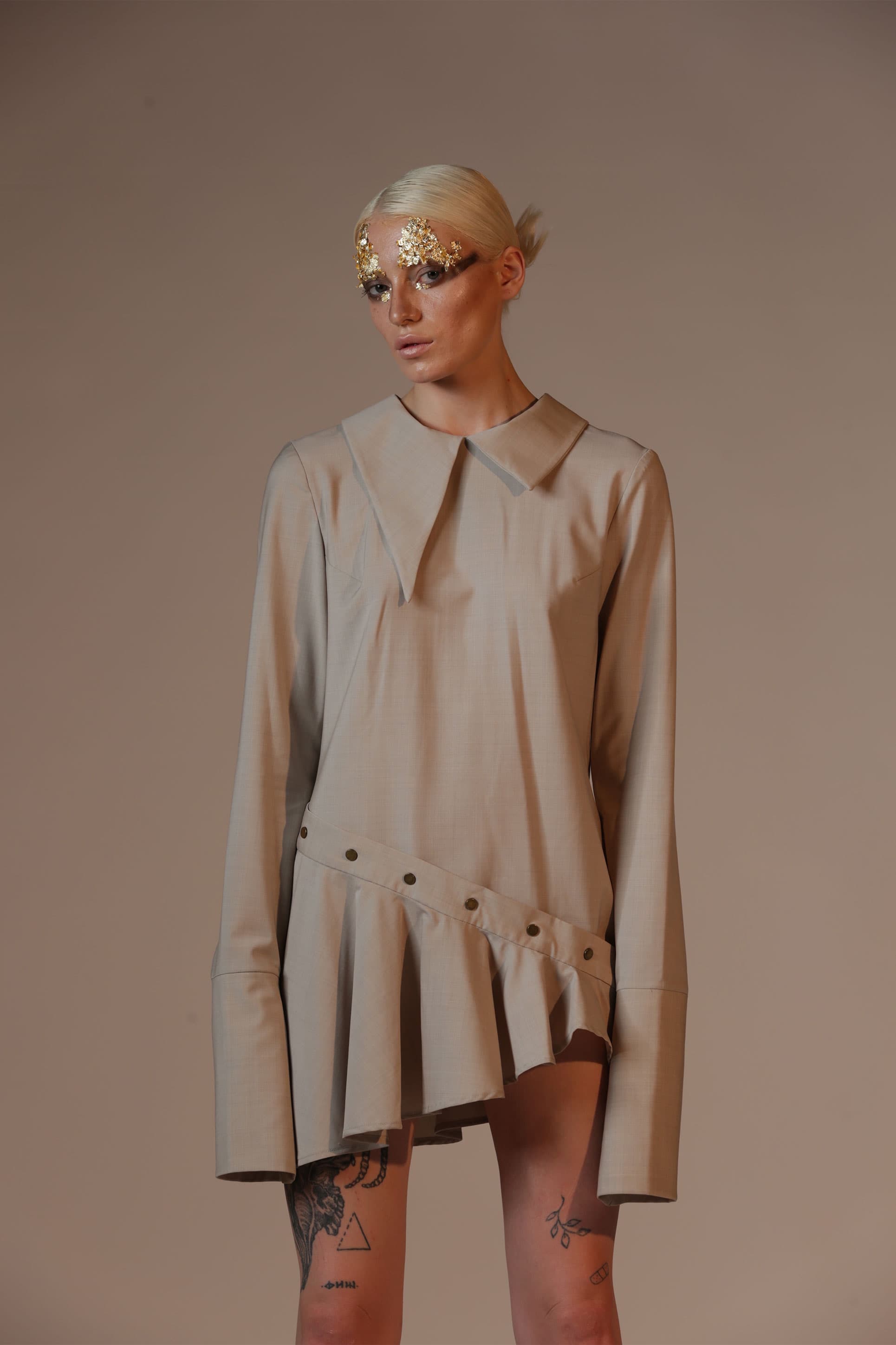 Asimetrik bir elbise olan Freydis, çıtçıt detaylı, fonksiyonel bir elbiseye sahiptir. Bluz olarak da kullanılmak üzere tasarlanmıştır.