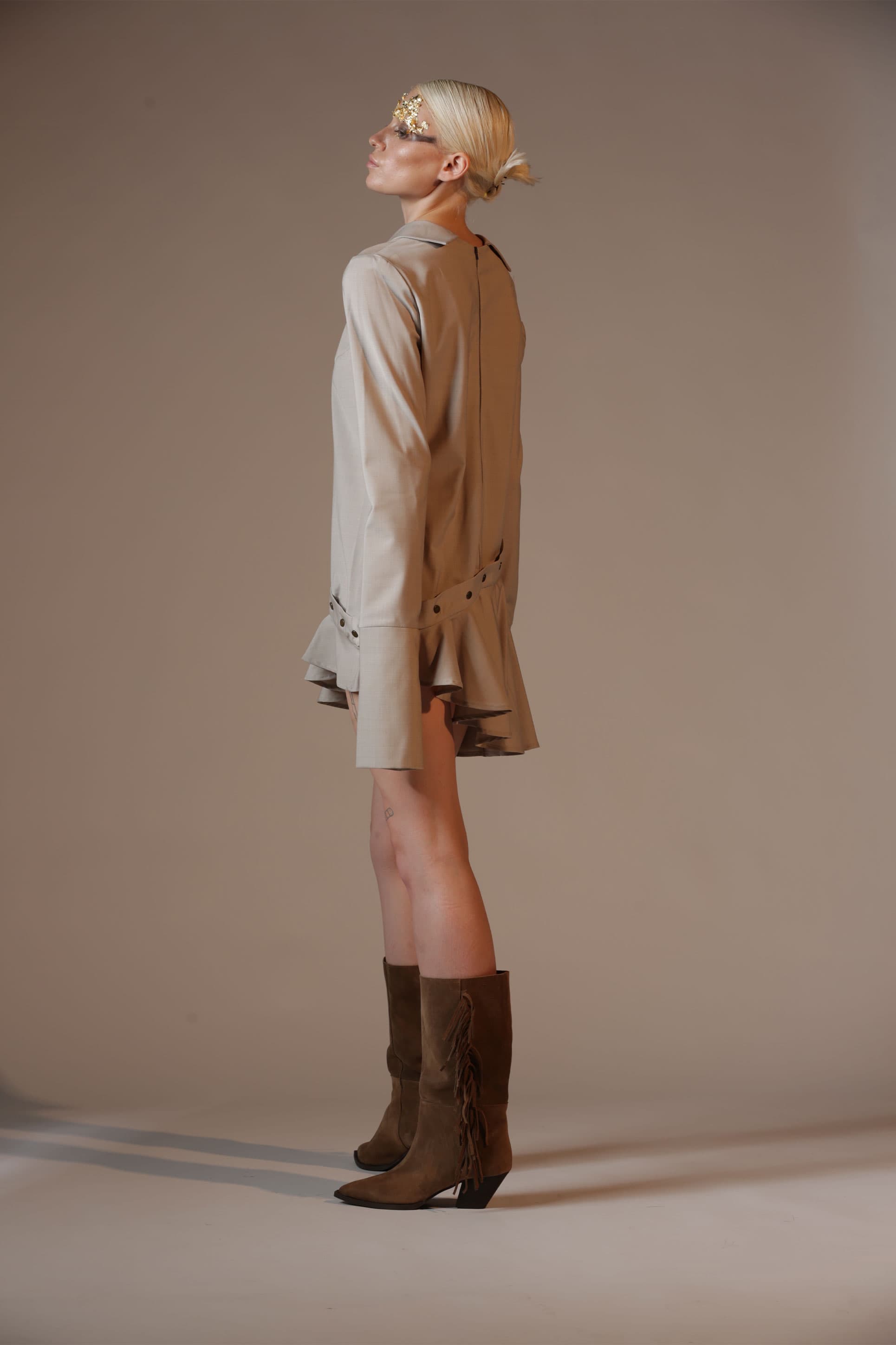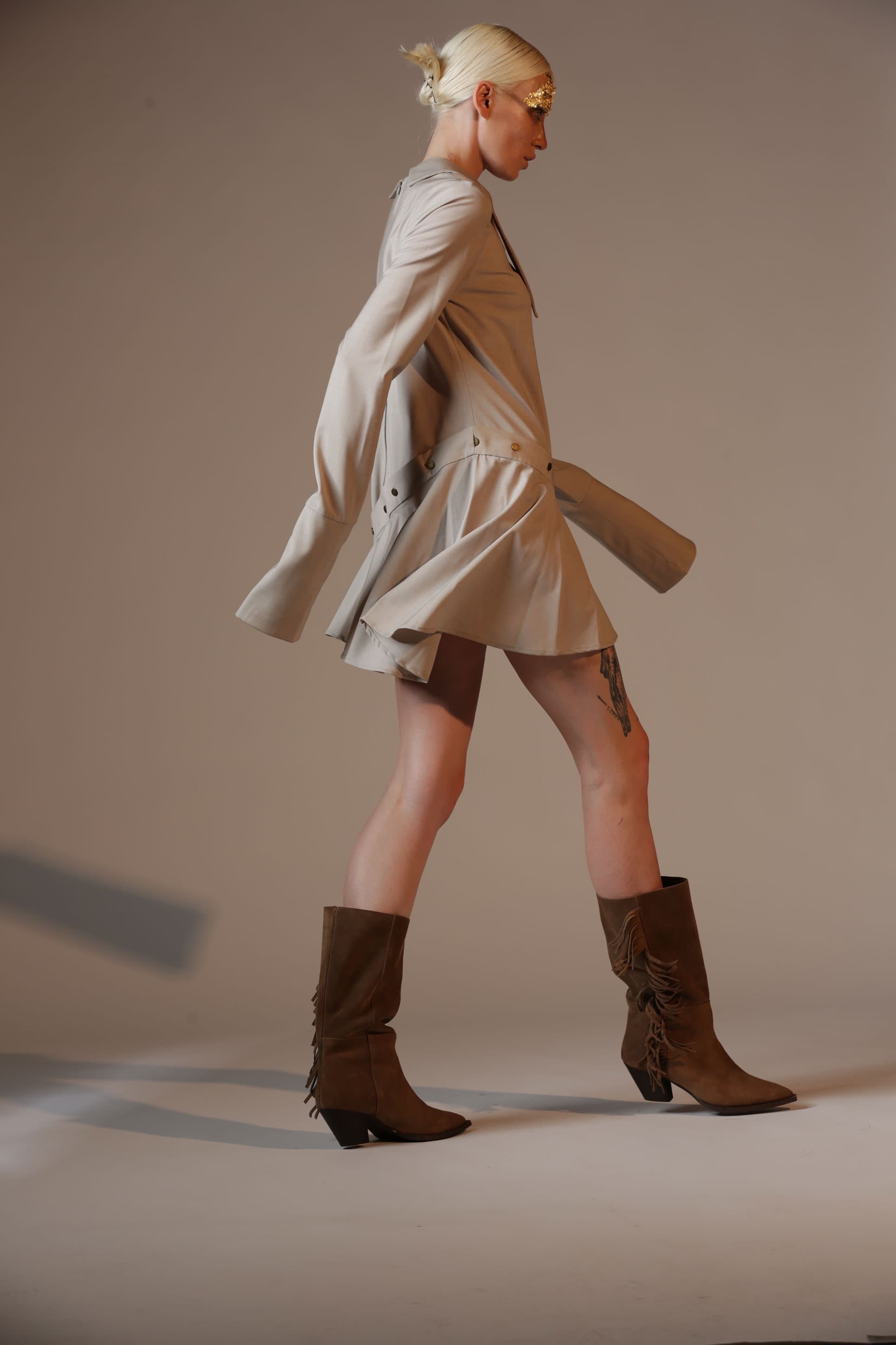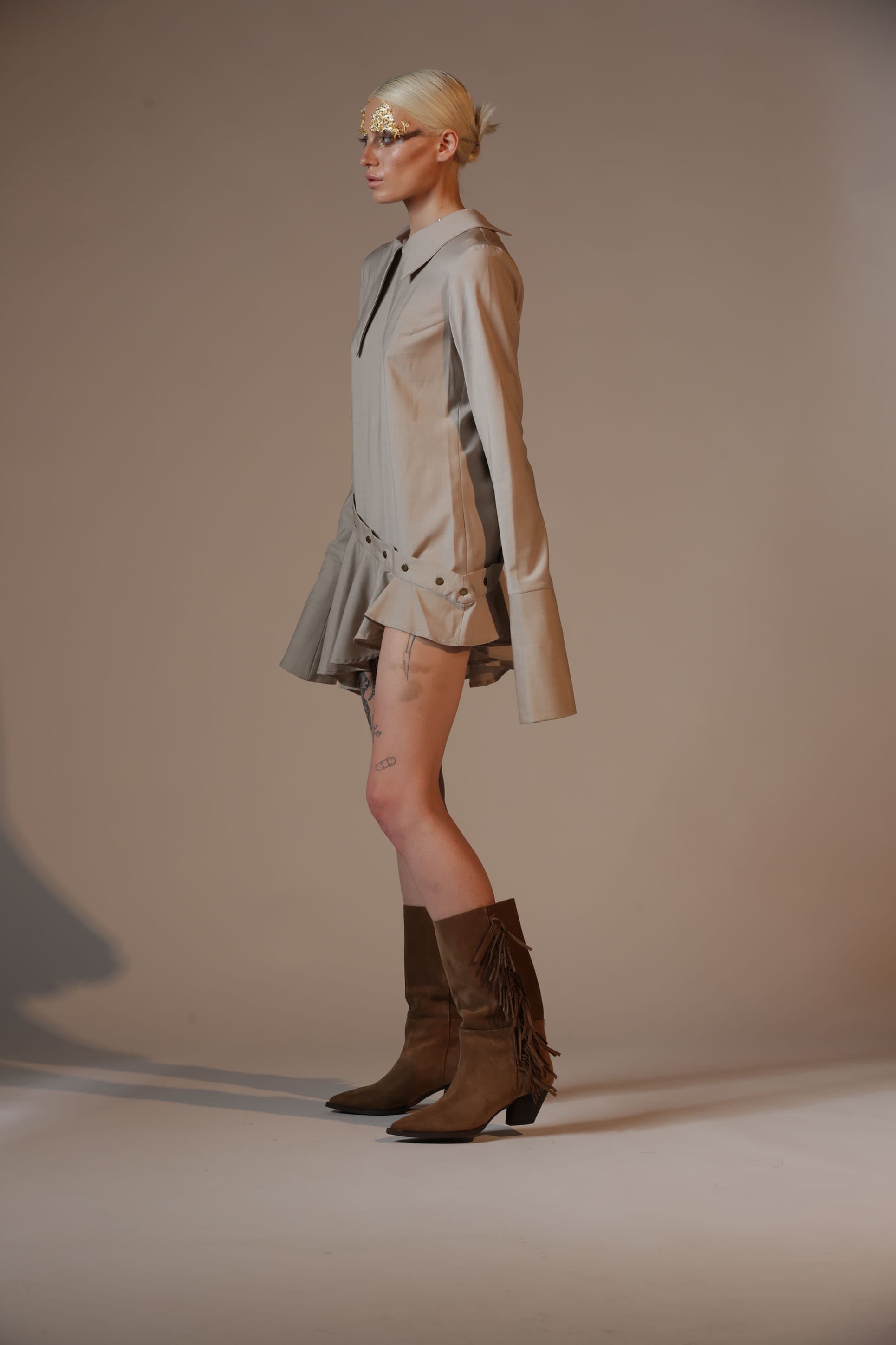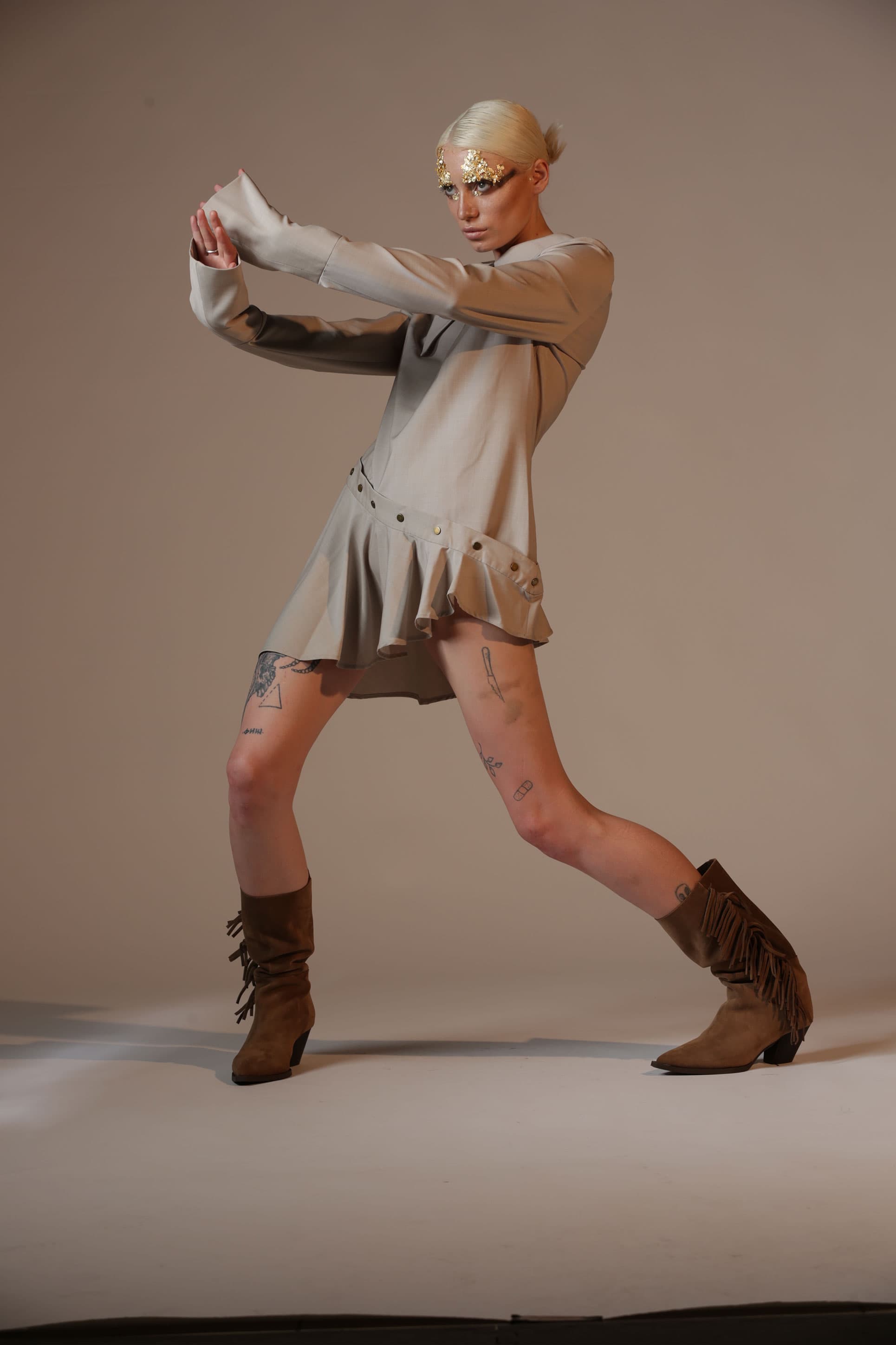 Asimetrik bir elbise olan Freydis, çıtçıt detaylı, fonksiyonel bir elbiseye sahiptir. Bluz olarak da kullanılmak üzere tasarlanmıştır.
