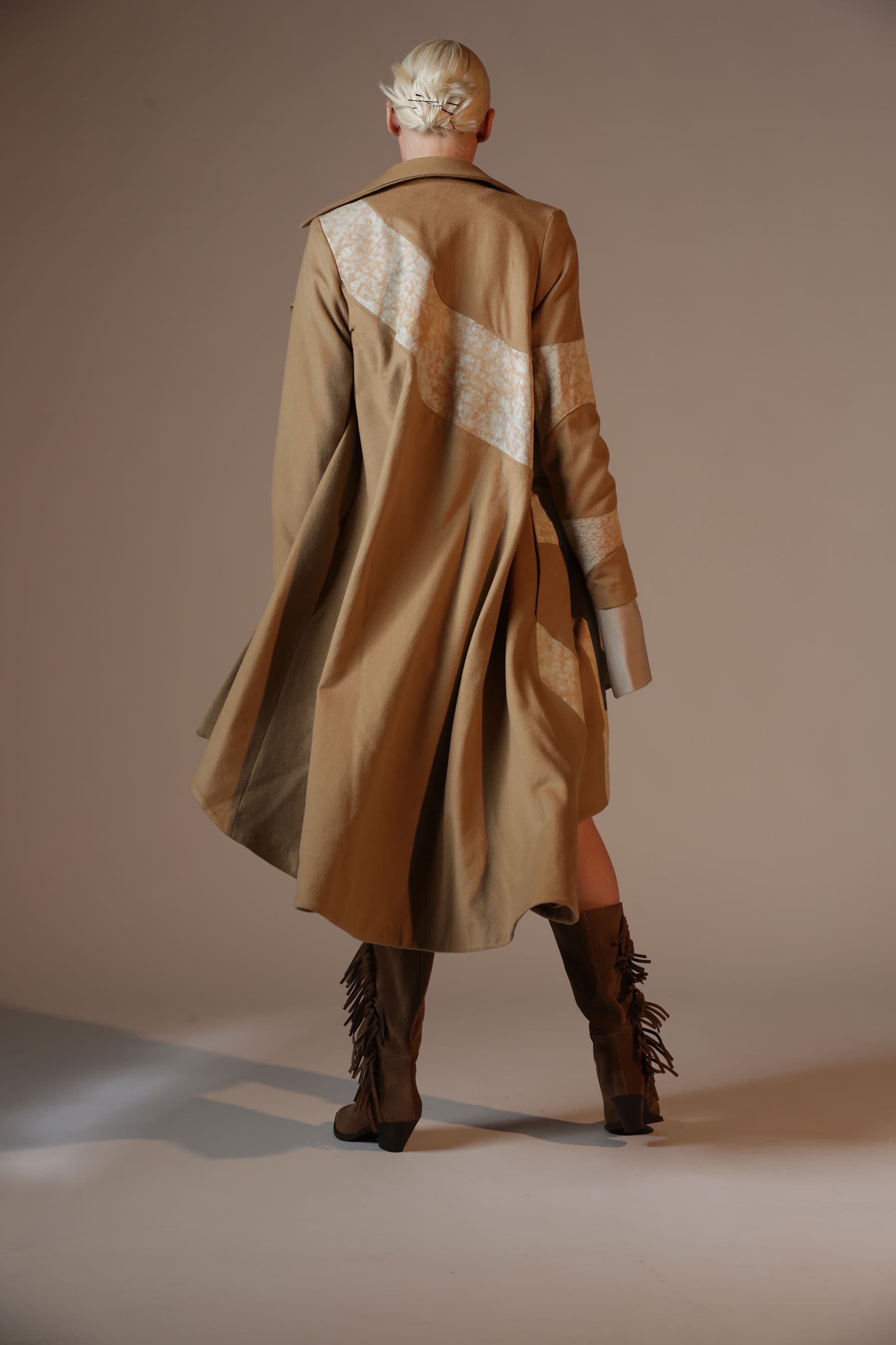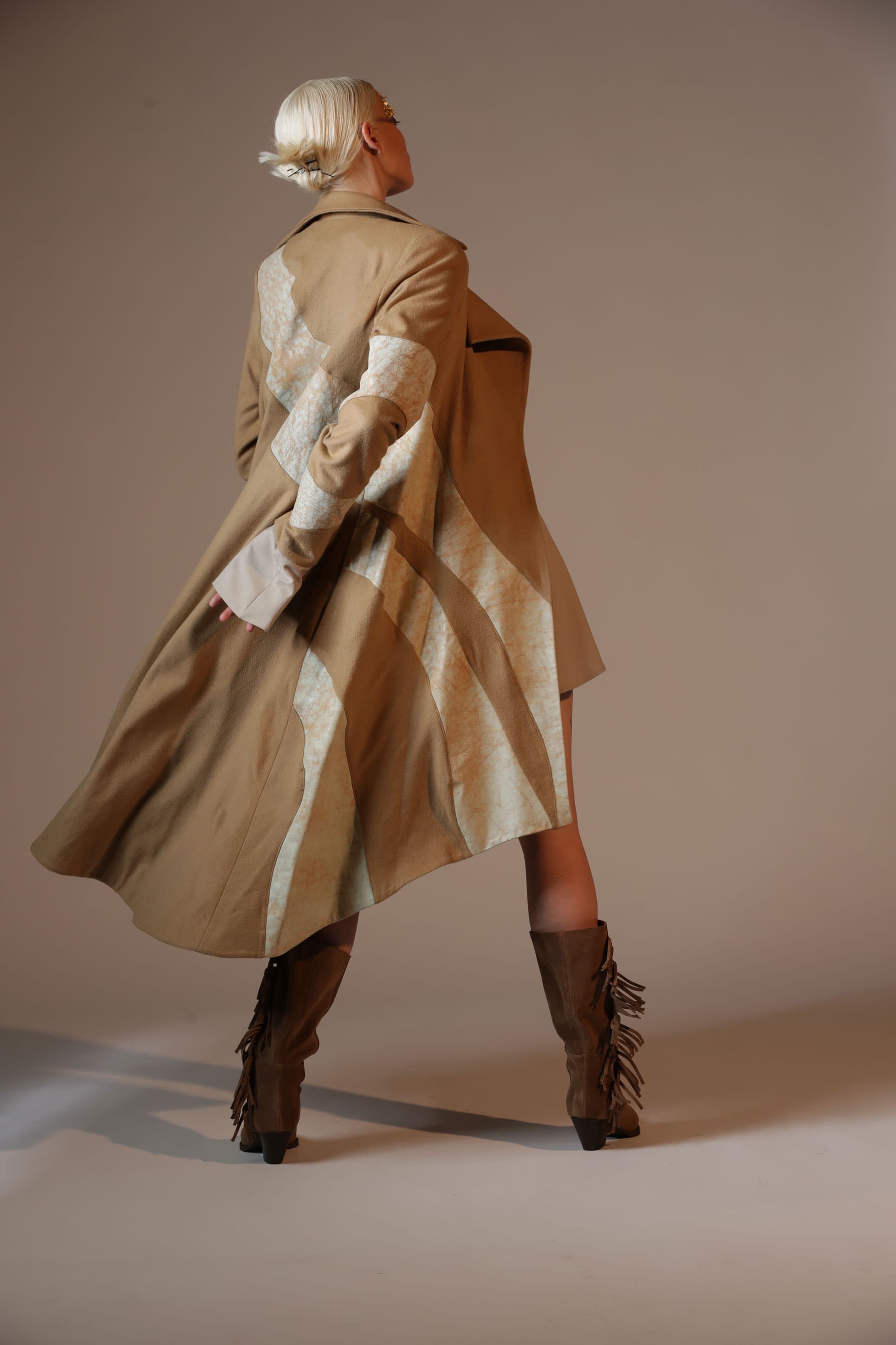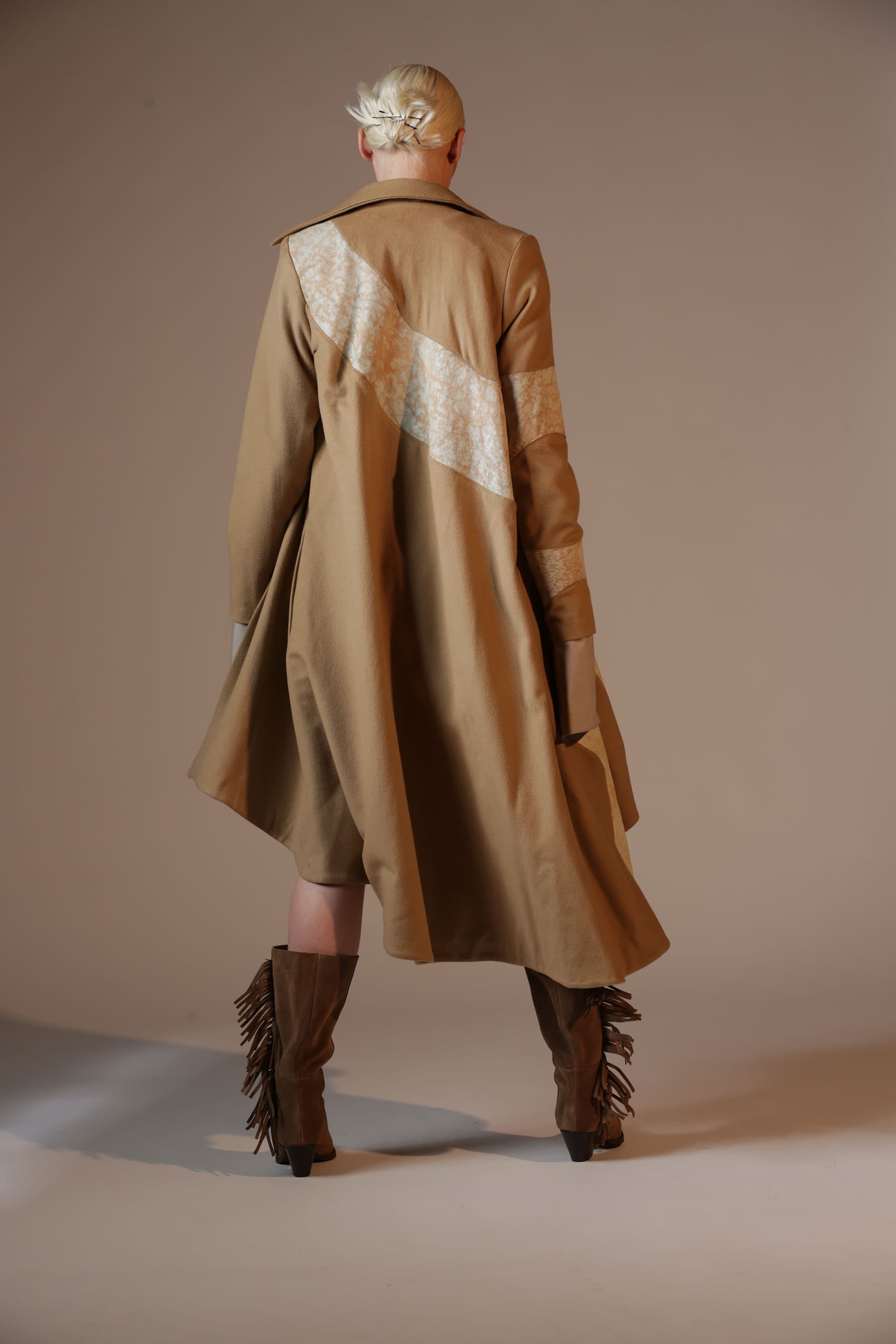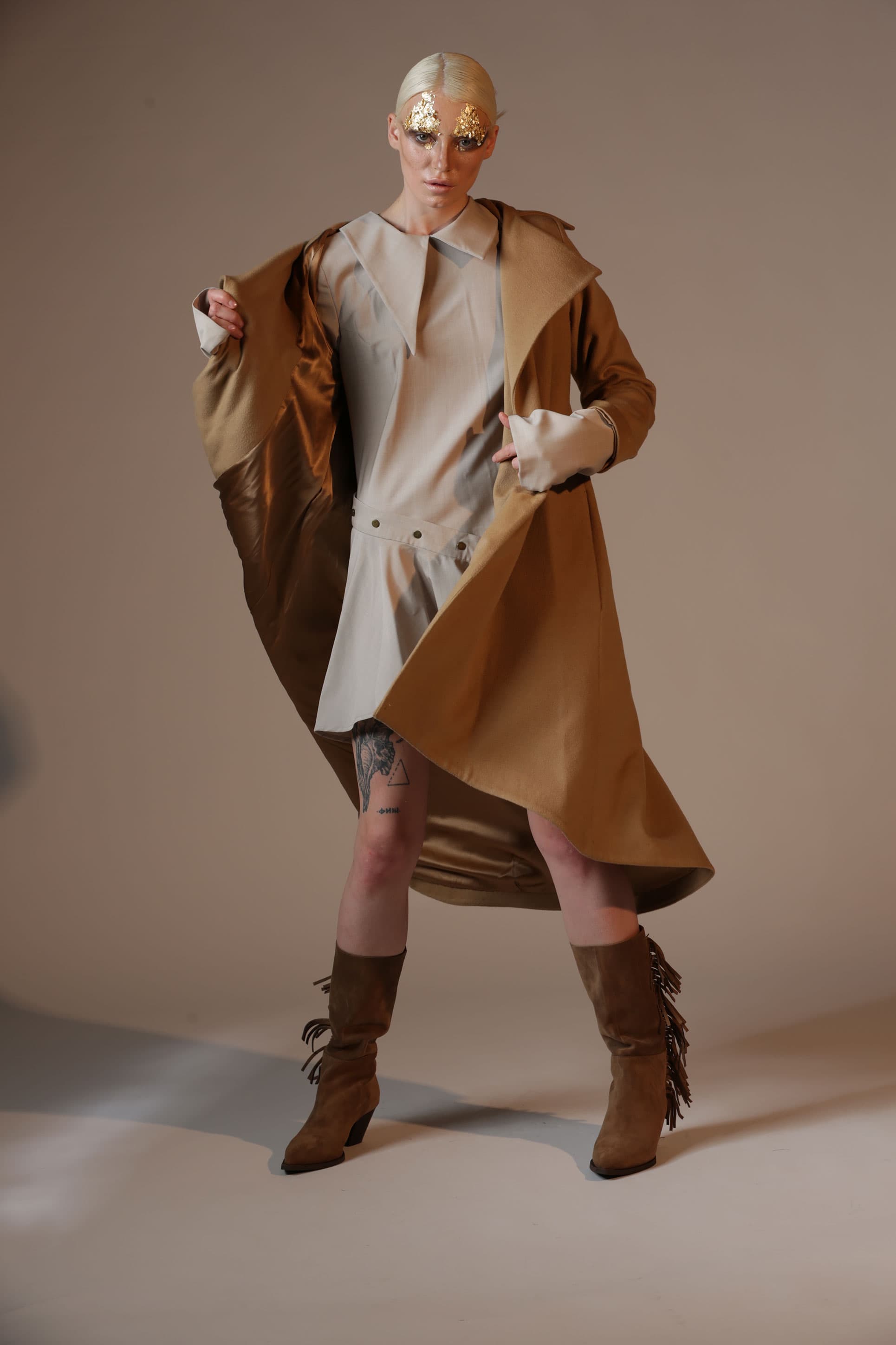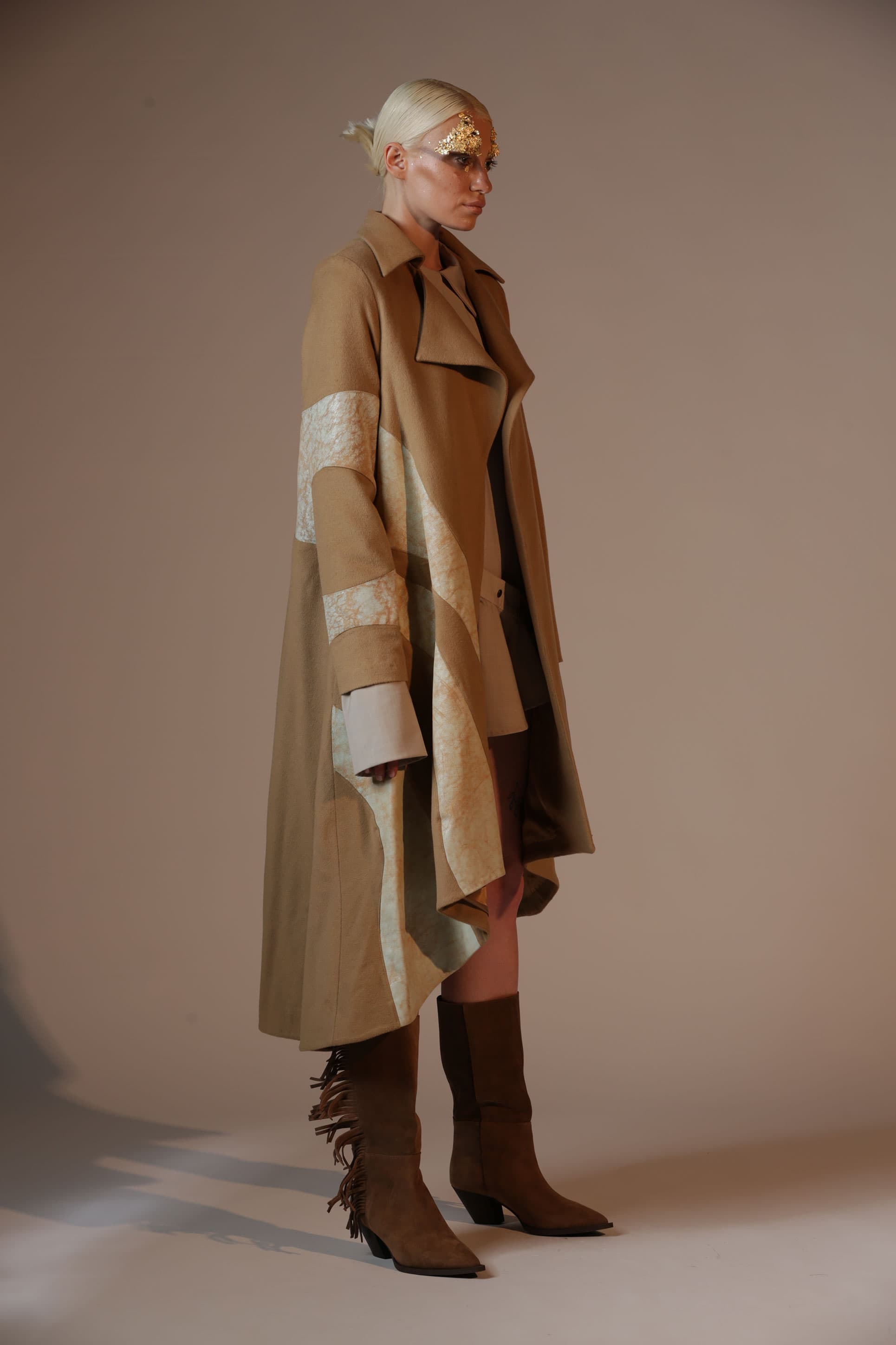 Derinin boyasının çatlatılmasıyla oluşturulan Lagertha, deri detaylı asimetrik kesimlerden oluşuyor . Kollarda ve gövdede yer alan deri detayların devamlılığı bütünlüğün göstergesidir. Klasik tarz, kaşmir ve derinin eşsiz birleşimiyle modern bir parçaya dönüşüyor.