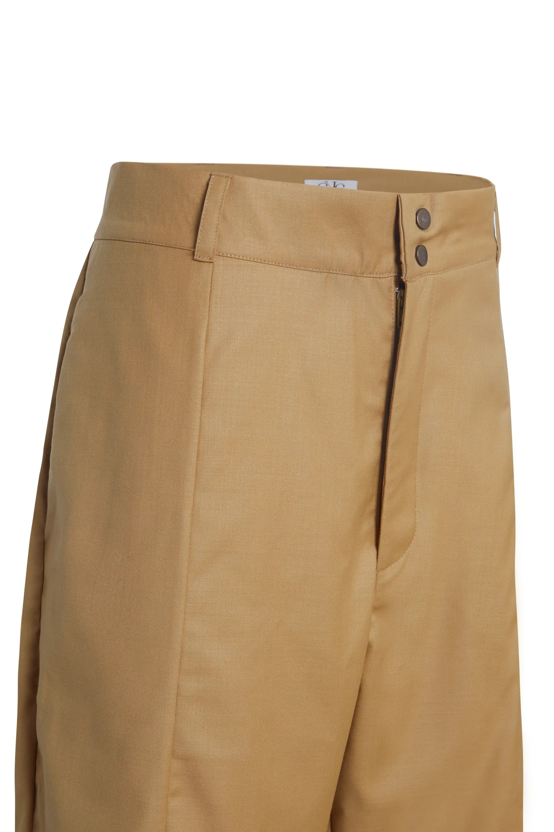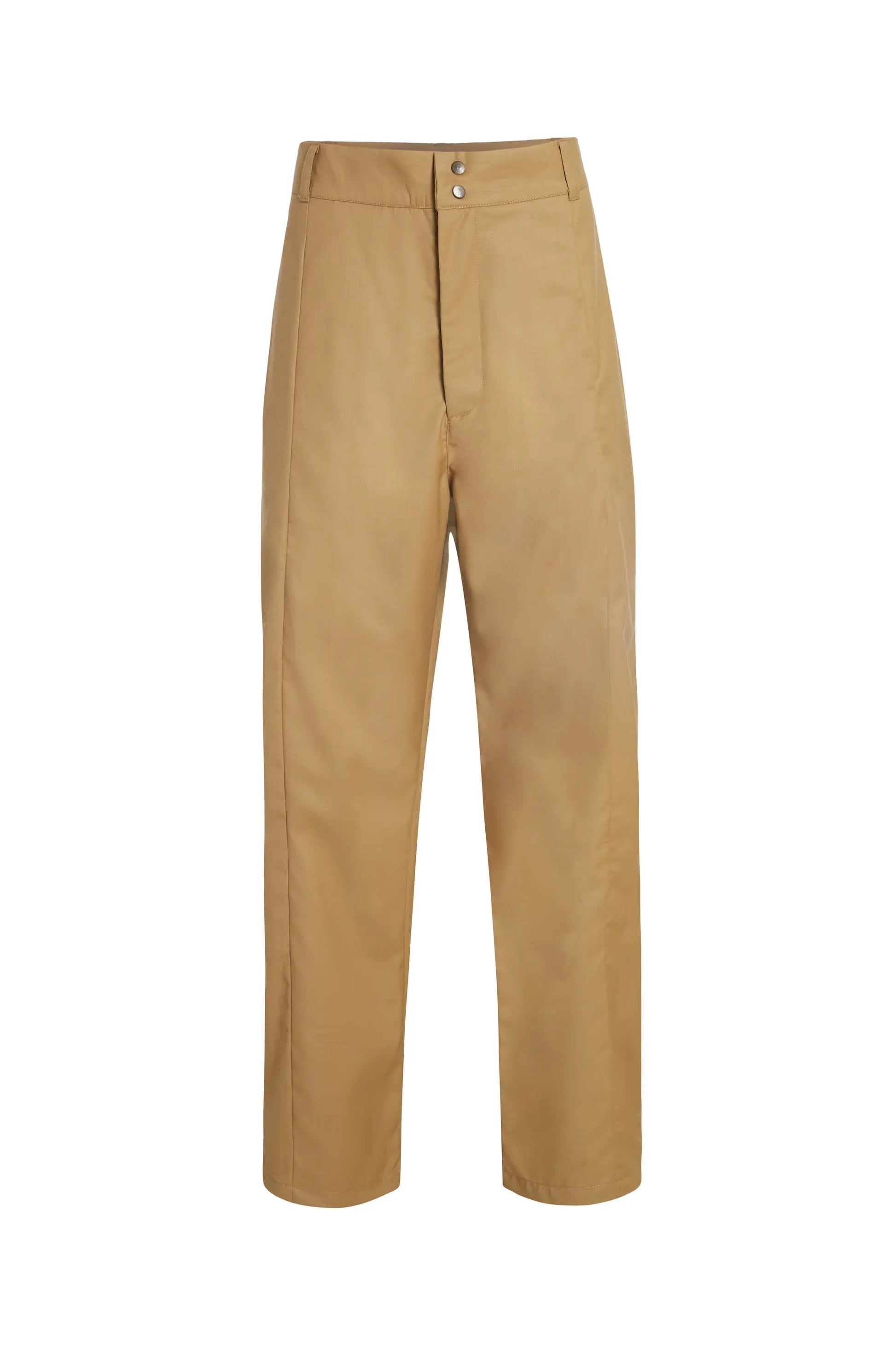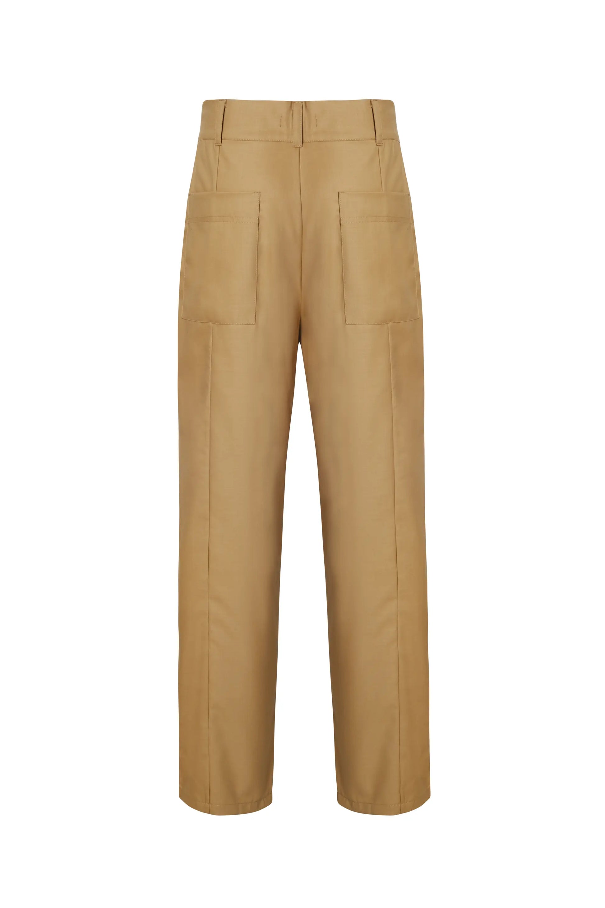 Temiz bir silüete sahip klasik, normal kesim yün pantolon. İki arka welt cebi ve fermuarlı ve iki çıtçıtlı güvenli ön kapatması vardır.
